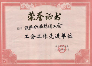 ·2008年,授予“日照興業(yè)集團(tuán)有限公司工會房地產(chǎn)開發(fā)有限公司工會模范職工小家”