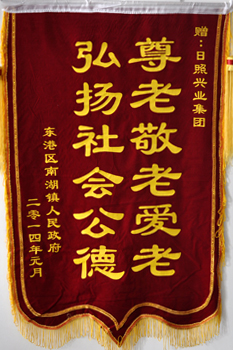 ·2014年元月,東港區(qū)南湖鎮(zhèn)人民政府贈(zèng)于興業(yè)集團(tuán)“尊老敬老愛老,弘揚(yáng)社會(huì)公德”錦旗
